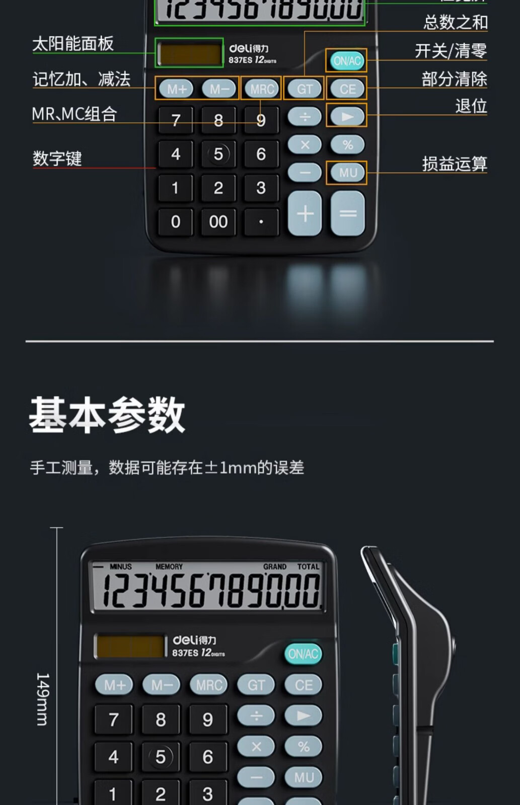 得力/deli 837ES 算術(shù)型計算器